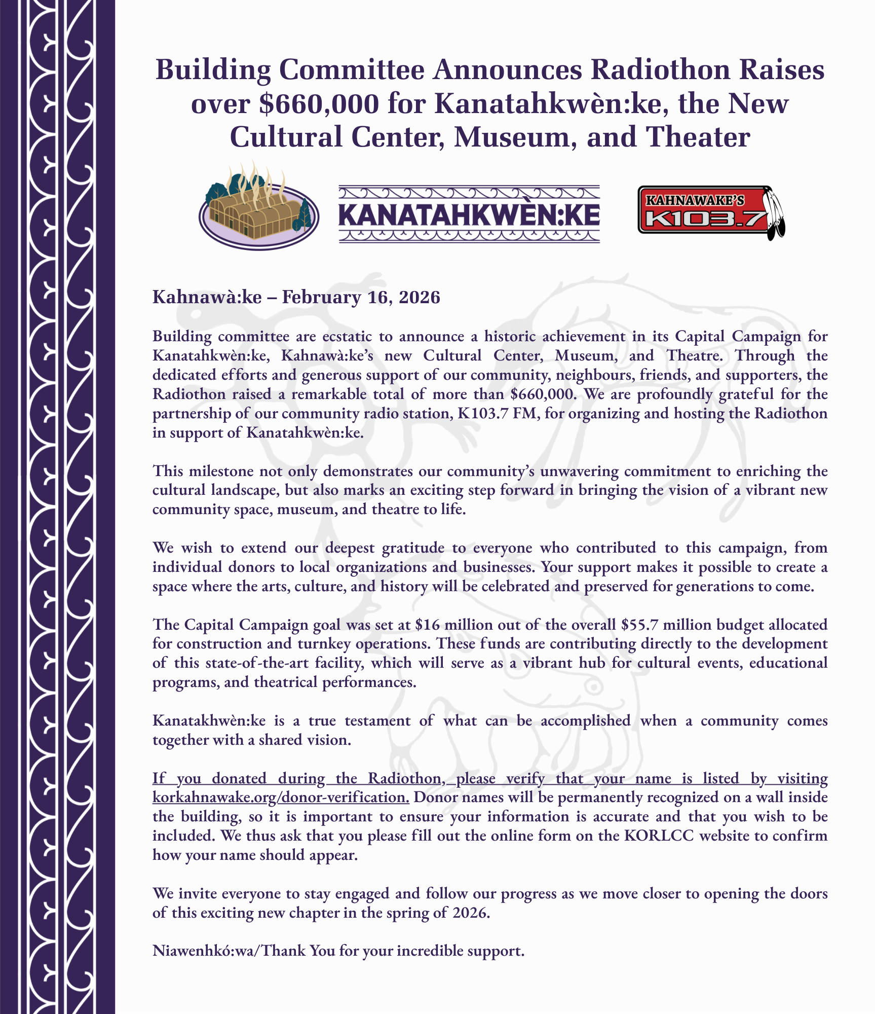 The Kanien’kehá:ka Onkwawén:na Raotitióhkwa Language and Cultural CenterLanguage. Culture. History. Art. Community. Click here to apply now! Clink here for Radiothon Name Verification