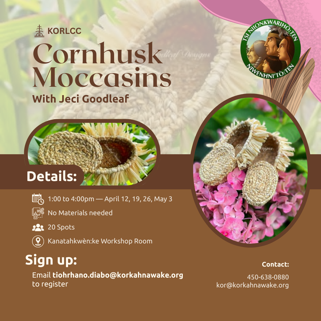 Back to All Events Corn Husk Moccasin Class Sunday, April 19, 2026 1:00 PM 4:00 PM Google Calendar ICS